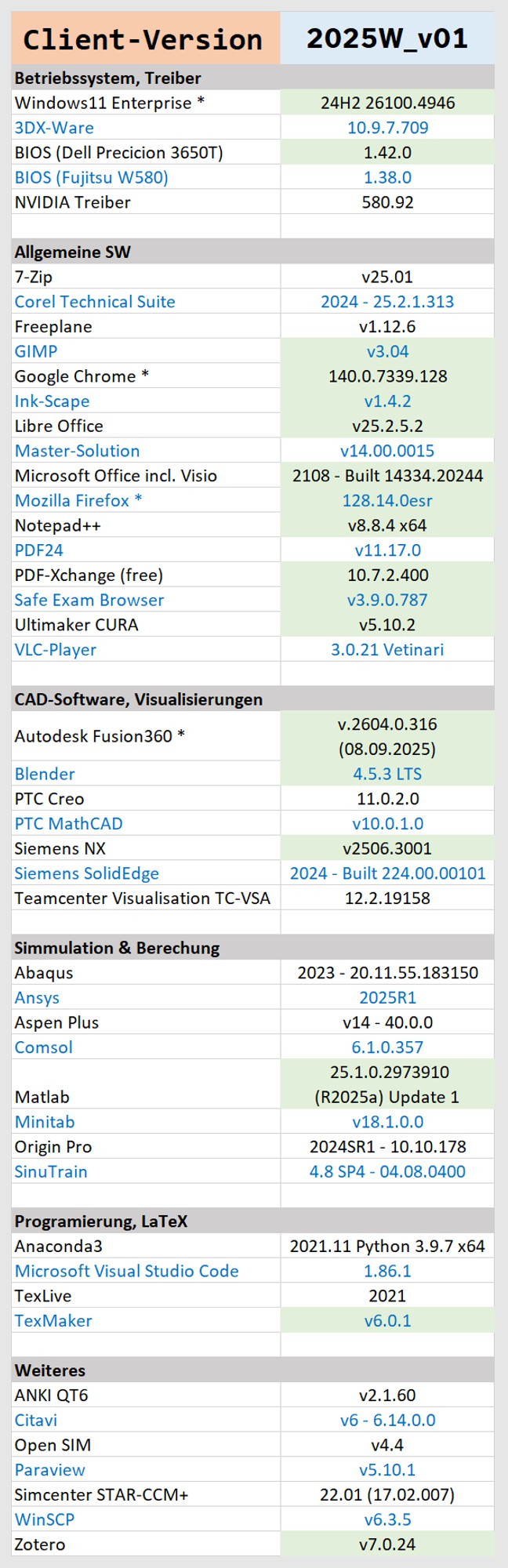 Die aktuelle Softwareliste für das Wintersemester 2025/26: